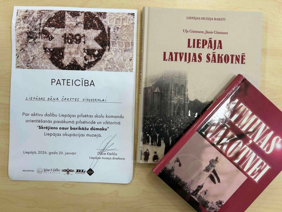 20.janvārī mūsu skolas komanda - trīs skolēni no 9.klases un divi no 12.klases - piedalījās Liepājas Okupācijas muzeja organizētajās orientēšanās sacensībās “Skrējiens caur barikāžu dūmaku”, lai interaktīvā veidā iegūtu zināšanas par Barikāžu notikumiem Liepājā 1991.gadā. Vēstures skolotājas Anita un Kintija saka lielu paldies skolēniem par dalību pasākumā un Liepājas Okupācijas muzejam par pasākuma organizēšanu.