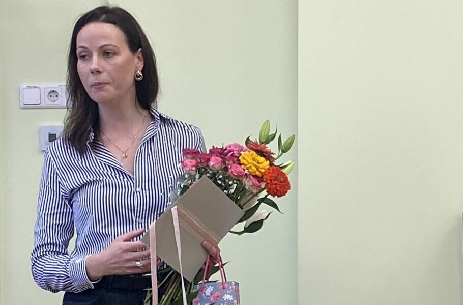 skolniece, tad sākumdaļā bija daži pārsteigumi pašai aktrisei- viņas skolas laikā rakstītais dzejolis, latviešu valodas skolotājas Simonas