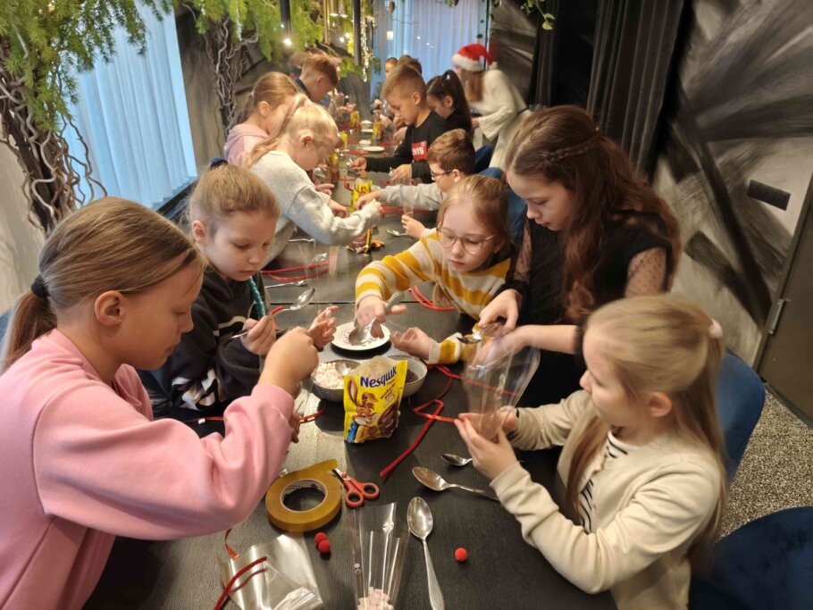 Gatavošanās Ziemassvētkiem 3. d klases skolēniem rit pilnā sparā. Šodien restorāna "Maestro" Ziemassvētku darbnīcā tapa īpaši gardās, saldās dāvaniņas. Gatavošanas procesā viss tika arī nogaršots, tāpēc skaidri zināms, ka dāvaniņas garšos lieliski! Prieks gan šodien pašiem dāvanu gatavotājiem, gan Ziemassvētkos - dāvanu saņēmējiem.